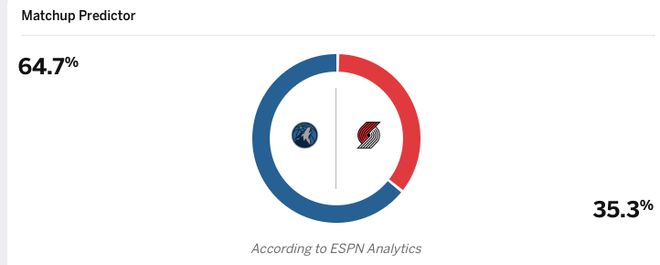 ESPN预测开拓者vs森林狼揭幕战:开拓者胜率仅35.3%