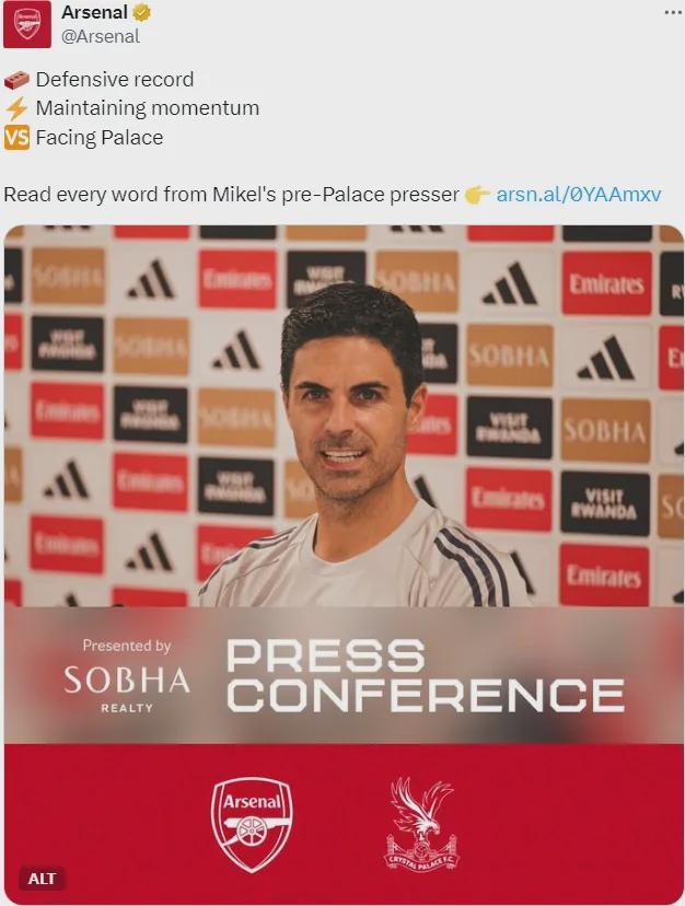 本赛季阿森纳在英超的防守数据:被射门65次(英超最少),被射正18次(英超最少),预期丢球4.8个(英超最低),丢球3个(英超最少)。现在的阿森纳就是铁血防守的代名词,定位球和防守专家,这两个过去和阿森纳很少联系在一起的词汇,现在已经成为了俱乐部的新标签。阿尔特塔赛前也被问到了很多关于防守和定位球的事情,我们下面再看。塔子确实在重塑这家俱乐部的足球哲学和文化,转变期总是会有争议,但现在阿森纳确实最需要冠军,只要能夺冠,毫无疑问就是好的。官方:阿森纳青训小将,上周还在跟随一线队训练(24岁了,去年其实就离队了,在其他球队效力了一年又成了自由球员)的特雷西·约翰-朱尔斯和苏超的基马诺克俱乐部签下了一份短期合同。朱尔斯一度也是希望之星,还代表一线队在热身赛中出场过,进过球,也有助攻,但他最近几年几乎没有进步,租借到低级别联赛球队也始终没有亮眼的发挥。24岁了,把握住机会吧,否则职业生涯很难再掀起风浪了。埃泽在接受TA采访时表示,他确实一度差点加盟热刺。埃泽说:“我本来准备加盟热刺的……但从阿森纳介入的那一刻起,我的选择就一直都是他们了。为阿森纳效力更像是一场表演或者戏剧,压力更大,因为我们是为冠军而战,但这正是我一直以来梦想的。”要不是阿森纳最后时刻果断抢人,恐怕埃泽已经是热刺的球员了,这也不怪他,埃泽不年轻了,能去大俱乐部的机会不多,可以理解。但阿森纳加入之后,那就不用纠结了,心中的小男孩指引他来到了酋长球场……埃泽其实还没发挥出真正水平,或者说还没完全展现他的特点,这与战术安排和球队风格有关,埃泽还在慢慢适应他的角色,但无论如何,有他和厄德高在,显然这个位置更有竞争力。这个赛季球队实力强悍,有的是机会让新人适应,不着急。阿尔特塔出席了赛前新闻发布会,我们来看看阿森纳主帅的发言。在马竞的比赛之后,有什么伤病方面的新情况吗?没啥太多要说的。显然上场比赛加布里埃尔不得不提前下场,他遇到了问题,并且至今还未恢复训练,所以让我们看看接下来的24小时情况如何吧,看看他能不能出场。马杜埃凯、厄德高、哈弗茨和热苏斯等长期伤员情况如何?他们的恢复进展都很好,并且都非常渴望尽快回到赛场。但目前来说,他们之中没有人能在下周复出。新赛季12场比赛只丢3球,这是个伟大的数据,也是阿森纳队史同期最好的,你们有动力进一步创造历史吗?也许打破切尔西的赛季最少丢球纪录?是的,我们希望这样的纪录和数据最终能为球队带来冠军奖杯,显然,我们越能创造这种数据,那么我认为就越能接近达成我们想要的目标。这个防守数据非常好,但我们需要保持稳定,而不是只在赛季初才能做到,我们的目标是继续提升自己,让更多地方变得更好。很多人都在谈论这支球队的实力,但对你来说,把一些球员排除在大名单之外不是易事吧?因为他们也许配得上进入大名单,你是怎么安抚这些球员的?我认为这可以分为两个部分。一方面,从个人感情上来说,我希望让他们所有人都能踢比赛,但另一方面,毫无疑问我更希望拥有现在这种情况,而不是几年前我们经常人手短缺那种情况。所以我们创造了一种很强势的环境,一个非常有竞争力和支撑性的环境,希望这可以帮助我们挑战每场比赛,这就是我们的目标,我们在朝着这个方向前进。赛季至今阿森纳打进了15球,其中三分之二的进球来自定位球,运动战进球只有5个,你对此感到担忧吗?不担心,因为我不认为足球比赛分为运动战和定位球,我是以另一种方式看待比赛。你是从什么时候开始意识到定位球会变得非常重要的?10年前。能否解释一下?10年前我就说过,定位球是很重要的,我开始对此有一个画面,尝试找到一种方法,让最擅长定位球战术的人来参与训练并实现这点。在防守方面,说起温格的成功,很多人认为他也是从打造后防五老作为基石开始的,你是否也在尝试复制这点?当然不是简单的复制,但你是否也在努力通过打造坚固的防线来再现温格的成功?我回顾了足球历史,通常来说,拥有最好防守数据的球队会赢得联赛冠军,大部分时候,除了最近三个赛季的英超……但我们在这个基础上越强大,就越有机会赢得比赛。你刚才说10年前就看到了定位球的重要性,我记得当时你是作为球员的最后一年吧?你那时候就看到了比赛的发展趋势,并且认为10年后定位球会成为足球比赛的重要一部分?是的,因为我去了曼城,和世界上最好的主教练一起工作,我看到了我们还能提高哪些地方。某个时候我也在做这件事,但我不是世界上做这件事最好的人,这说明还有其他方式可以改进。关于防守,当出现混乱时,在每次转变中我都希望我们是最好的,我想成为最好的。包括控球和进攻,甚至包括低位防守。这种渴望可以帮助你不断地找到方法去提升你的球队,给你的球员们提供更多工具,变得更加不可预测,特别是更加高效,就这样。你有没有感觉到英超正在逐渐向着你的足球思维模式演变?你有没有看到其他球队在模仿你们?我不知道,但这不意味着这更重要,我认为是同样重要的。我们必须加强训练,确保有利于我们的事情经常发生,而这会让对手陷入困境。但我认为所有人都在尝试做一样的事情。以上是赛前新闻发布会的大部分内容。长期伤病方面,那几个人虽然都在逐步接近复出,但不是这场或者下场就能复出的,还要再